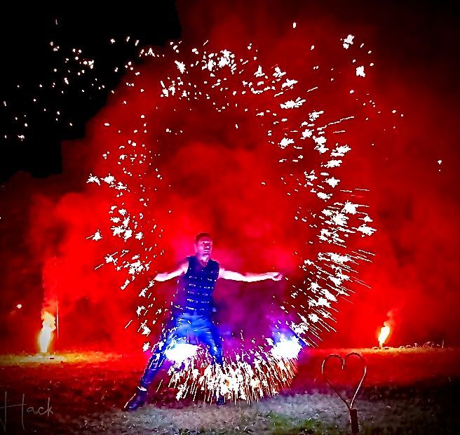 Der Allrounder- spielt Stab, Poi, Dragon Stab, Snakes, Seil,Fächer, Fakeln, Spezial Effekte: Flammenwerfer, Feuerwerker, Pyroshow